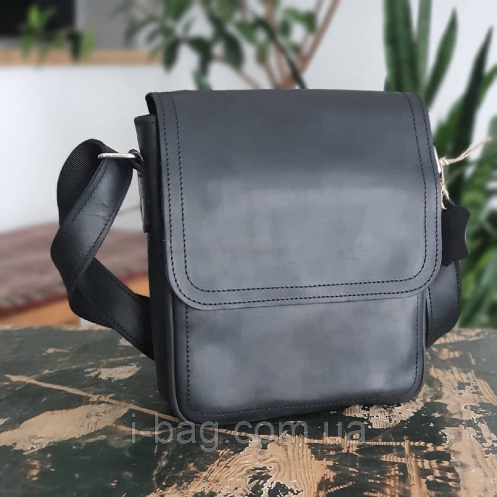 Чоловіча шкіряна сумка BGS з декоративною строчкою 23*20*7 см чорна BGS3198